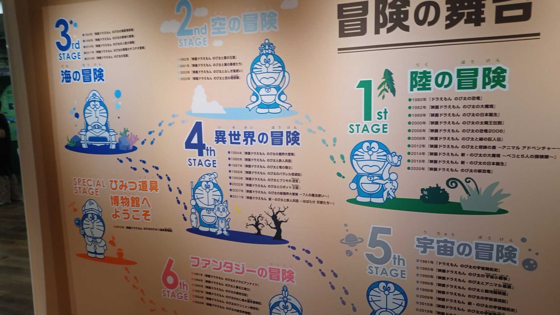 中では歴代の映画が6+1つのテーマに分かれて展示されています。陸、空、海、異世界、宇宙、ファンタジー、そして最後にはひみつ道具博物館だけで単体の展示。これは楽しみです。