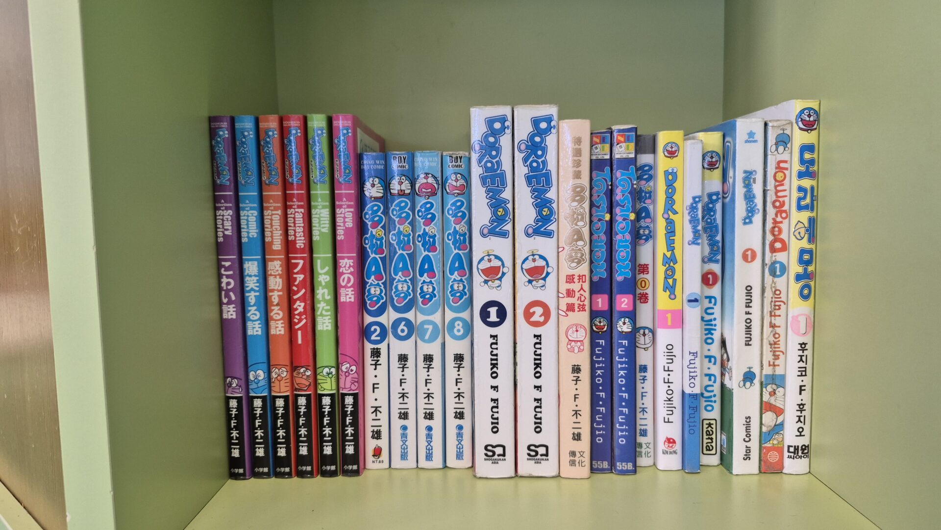 Fシアターもいつからか英語字幕がつくようになりましたが、まんがコーナーにも各言語のドラえもんがそろっていました。最近はショップの書籍コーナーにもアジアを中心に各言語のドラえもんが並べられていて、ついつい買っちゃいます・・・!