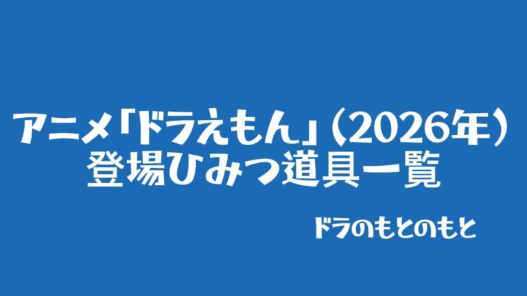 テレビアニメ 第1495話「雪雲ベース」(1月10日放送) 道具名 備考 前回登場 タケコプター 第1494話「スペースウエスタン 荒野のウマタケ」(2025年12月31日放送) 雪雲ベース 初 第1496話「環境スクリーンで勉強バリバリ」(1月17日放送) 道具名 備考 前回登場 環境スクリーンとプロジェクター 初 どこでもドア 第1492話「クリスマスプレゼントは大げんか」(2025年12月2 […]