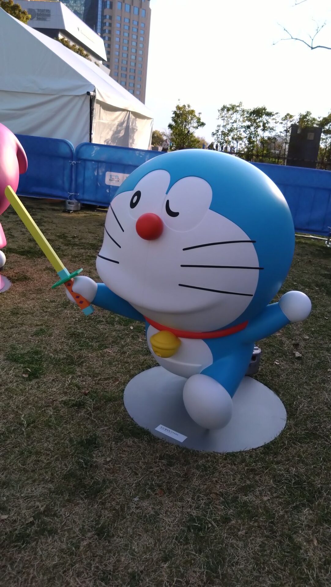 会場入り口にいるドラえもん。今回の立像はなぜか唇の厚みまで再現されています。